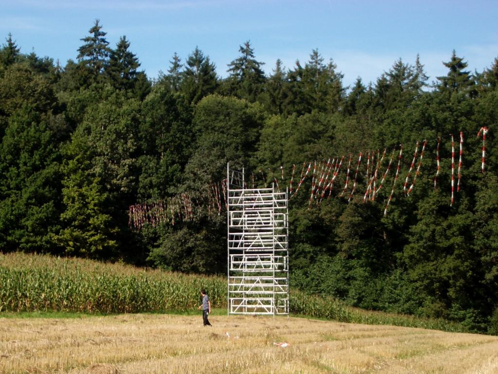 Bilder der Trassenführung Abgesteckte Höhe der Aufschüttung (12m) im unteren Bereich Warmuthsreut Abgesteckte Höhe der Aufschüttung (12m) im unteren Bereich Warmuthsreut Trassenverlauf, Blick von Westen Trassenverlauf, Blick von Osten
