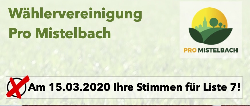 Geben Sie „Pro Mistelbach“ Ihre Stimme! Liste 7 bei der Gemeinderatswahl am 15.03.2020